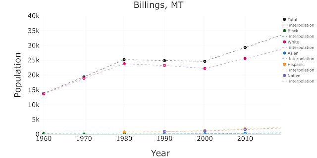 Note that in the previous cases, because data for some minorities was not even recorded before 1980 or 1990, I have chosen to keep the corresponding missing values. I could have also extrapolated the past… although in that case, the sum of the different sub-populations wouldn’t add to the total recorded by the US census, which is something to keep in mind and correct appropriately.